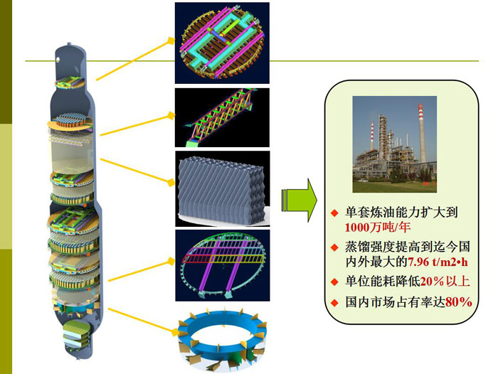 | 3 | 常減壓塔設(shè)計(jì)及制造 | 齊魯分公司 | 2009 | 導(dǎo)板槽式氣液分布器、桁架梁、雙切向環(huán)流進(jìn)料分布器、ZUPAC填料等 | Ф10800 |