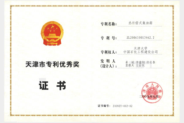熱補(bǔ)償式集油箱天津市專利獎(jiǎng)優(yōu)秀獎(jiǎng) -