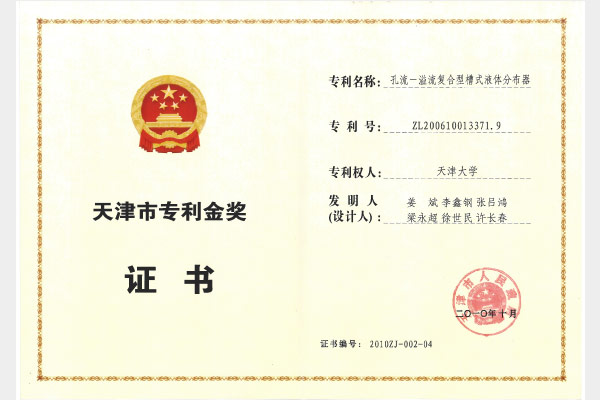 孔流溢流復(fù)合型槽式液體分布器天津市專利獎(jiǎng)金獎(jiǎng) -