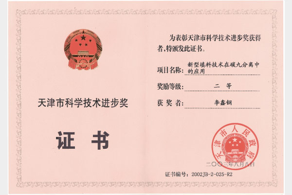 新型填料技術(shù)在碳九分離中的應(yīng)用天津市科技進(jìn)步獎(jiǎng)二等 -