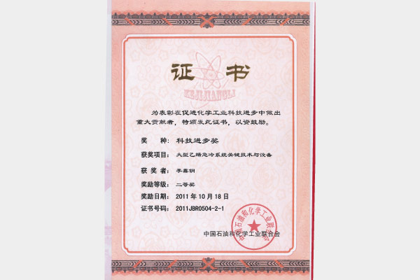 大型乙烯急冷系統(tǒng)關(guān)鍵技術(shù)與設(shè)備中國(guó)石油和化學(xué)工業(yè)聯(lián)合會(huì)科技進(jìn)步獎(jiǎng)二等 -
