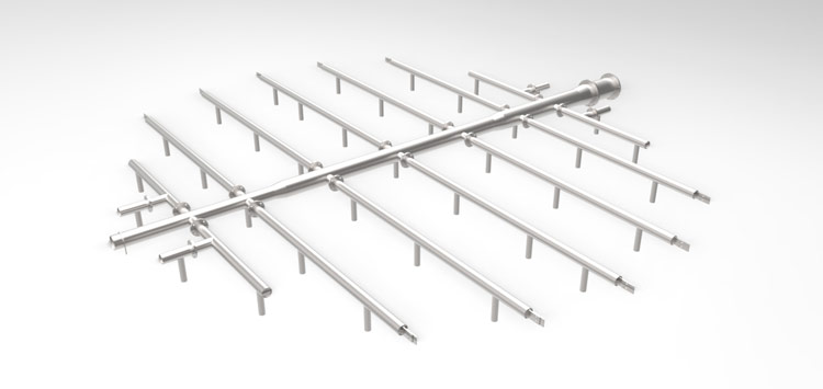 噴嘴式液體分布器是在壓力下通過噴嘴進行液體分布,具有占用空間小,潤濕效果好、分布較均勻的優(yōu)點。